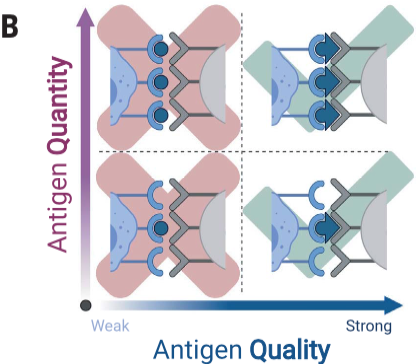 目前对T细胞应答的理解定义了抗原的三个功能类别:非激动剂、弱激动剂和强激动剂,根据它们对胸腺选择的影响分为death by neglect, positive selection和negative selection。该概念引出了抗原质量的概念,该概念已被证明可用于预测病毒或肿瘤是否可以成功根除,但难以从抗原序列中预测。