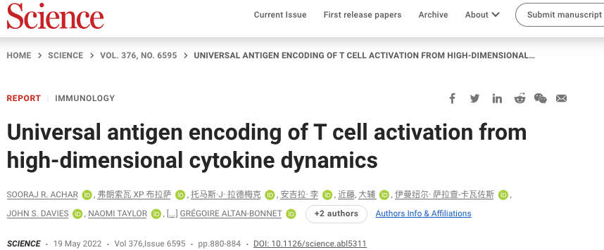 近日,在Science顶刊上,Achar等人发表了题为“Universal antigen encoding of T cell activation from high-dimensional cytokine dynamics"的文章,通过机器人平台与机器学习相结合,对T细胞活化进行实验测量和理论建模,研究广泛的功能性T细胞对不同抗原刺激反应的数据来解决这个问题。使用机器学习,作者构建了一个简化的地图,可以将6种不同的抗原依赖性免疫反应的类别分开。了解这种抗原编码可以帮忙指导免疫治疗,包括工程化嵌合抗原受体(CAR)-T细胞和识别疫苗抗原。