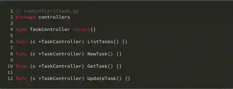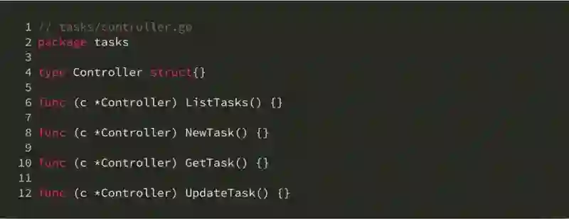 不过,这个做法有一个非常别扭的地方。考虑当我们需要在 controllers 包外引用 TaskController 的情形,代码会出现 controllers.TaskContoller 这样的形式。Golang 官方的 Effective Go 对于这样会造成引用方出现重复短语的包名称,认为这并不是好的命名方式。这个问题的本质其实又涉及到 Golang 的另一个独特之处,就是从其他包中引入的常量、变量、函数、结构体以及接口,都需要加上包的前缀来进行引用。