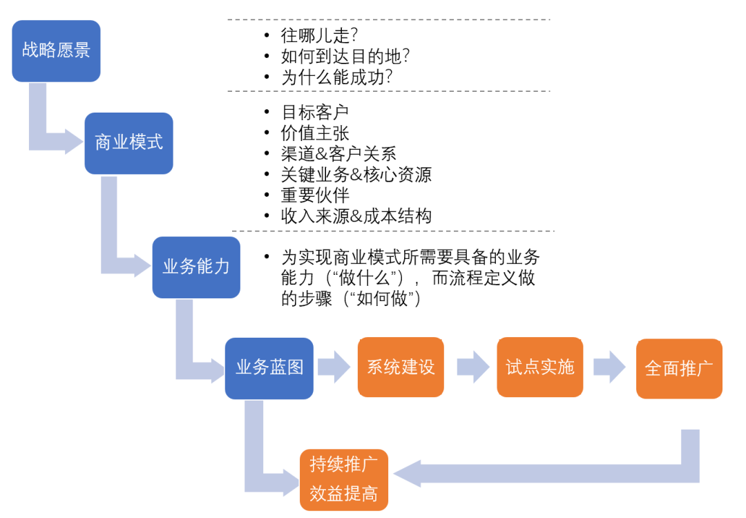 探讨和论证未来的业务模式、场景,结合最佳实践,构建未来的业务蓝图,明确重点转型方向。