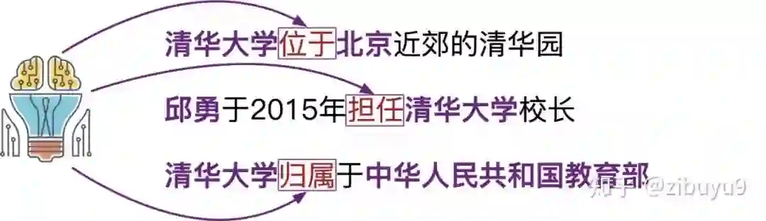 具体来说,给定一个句子和其中出现的实体,实体关系抽取模型需要根据句子语义信息推测实体间的关系。例如,给定句子:「清华大学坐落于北京近邻」以及实体「清华大学」与「北京」,模型可以通过语义得到「位于」的关系,并最终抽取出(清华大学,位于,北京)的知识三元组。