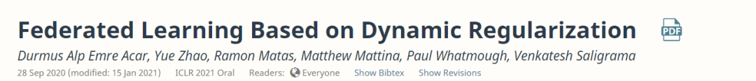 后台回复“FLDR” 可以获取《【ICLR2021】基于动态正则化的联邦学习》专知下载链接索引