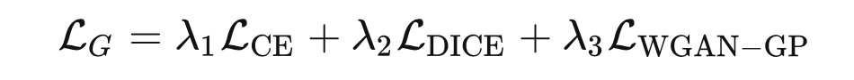 如标题所示,使用 GAN 的训练策略来使网络更好地利用像素级上下文信息,通过分割图像和 GT 图像进行对抗性的零和游戏,使分割图像更好地对分割部位信息进行学习。在涉及 GAN 网络和图像分割同时处理时,这里将不同任务的损失函数取权重相加,构成这里的损失函数。