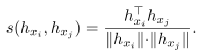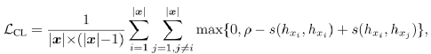 其中,ρ 是预先设定的 margin,hxi 是模型输出的 xi 的表示向量。相似度函数 s 计算任意两个表示向量之间的余弦相似度: