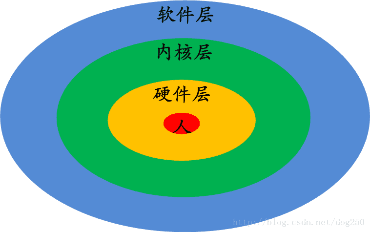 为了帮助理解上述的文字,我特意作图一张,希望能解释清楚这些终端之间的关系以及弄明白它们的工作流程。为了让图画的更加紧凑,避免横向网络吧图拉的过长而不好看,我这里采用了环形解释法,类似Intel早先的Ring1,Ring2,Ring3,我把最内层视作硬件(比它更里面的还有叫做人的东西),中间层视作内核,最外层视作软件。