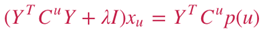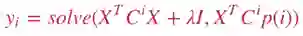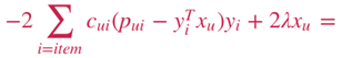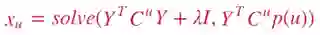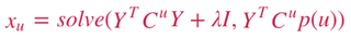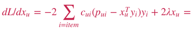其中P是一个二值化的矩阵,用来表达用户是否和物品有交互。C是confidence矩阵,由用户和物品的交互次数矩阵得到,次数越多相应的值越大,用来表达用户对物品的感兴趣程度。对于这个损失函数的优化可以通过ALS来实现,具体求解过程如下: