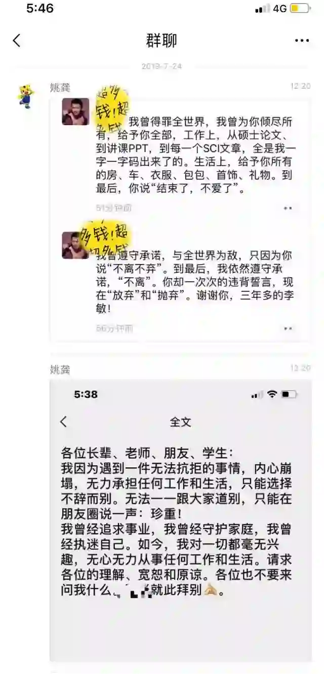 男生评硕导的时候才31岁,该女交往同班三个男朋友(院长学生,副院长学生,路人)➕为爱吞药的硕导。硕导已婚已育,为该女离婚送车送房送珠宝送5篇SCI,该女硕士论文都是硕导一字一字打的,硕导发现自己被小四了接受不了为爱吞药。