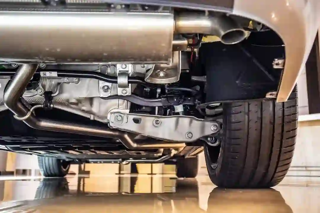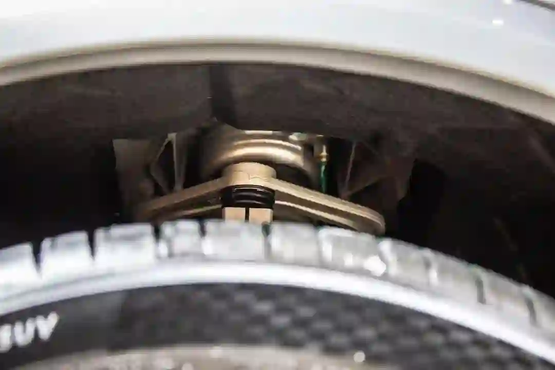 这辆车使用了前双叉臂、后五连杆的悬架结构,搭配空气弹簧和电控减震器,因此可以做到车身高度调节和软硬调节。车身在越野模式下最多可以升起 40mm,或在高速公路上降低 10mm。便捷进入模式下,悬架自动降低 40mm 方便乘客进出。
