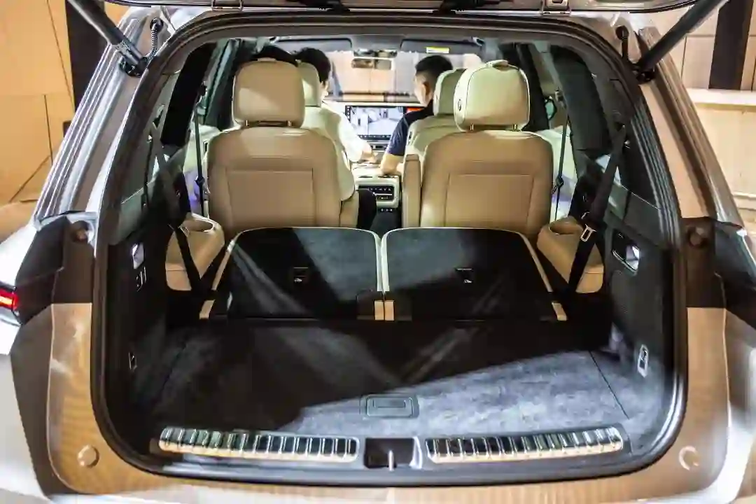 当然,绝大部分时候,L9 只会用到前面两排座椅,这时候就可以将第三排座椅电动收折起来,让后备厢变得更大。后排座椅放倒、第二排座椅位置微调等环节,都在后备厢里一键搞定,另外还可以降低后车身高度,方便装卸货物。