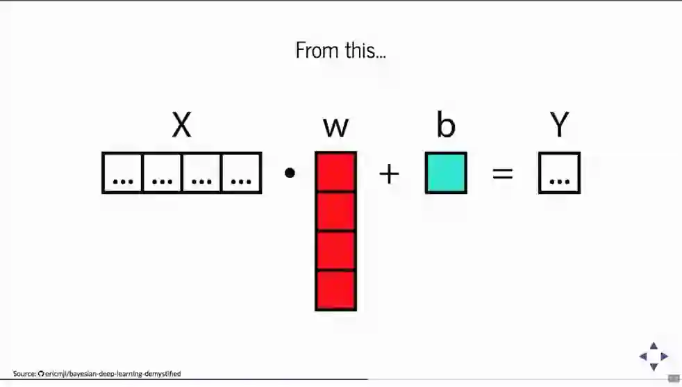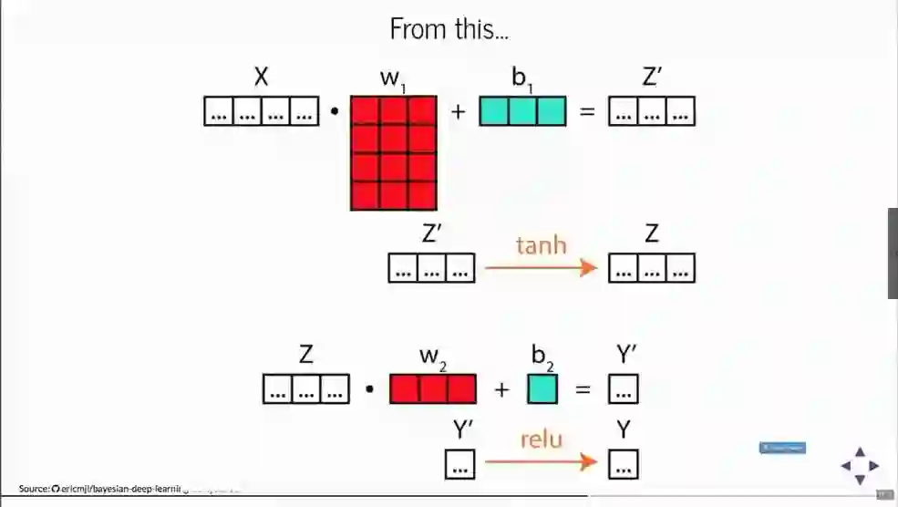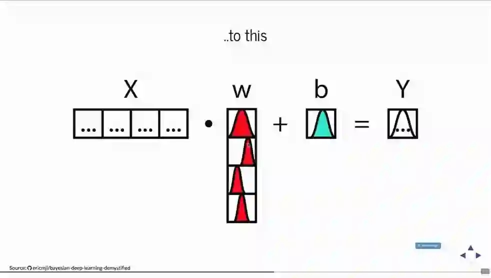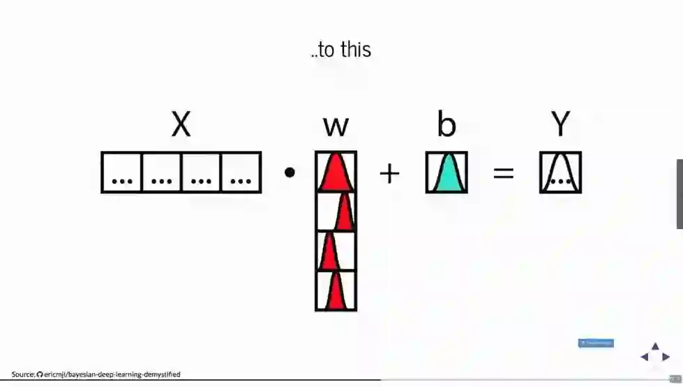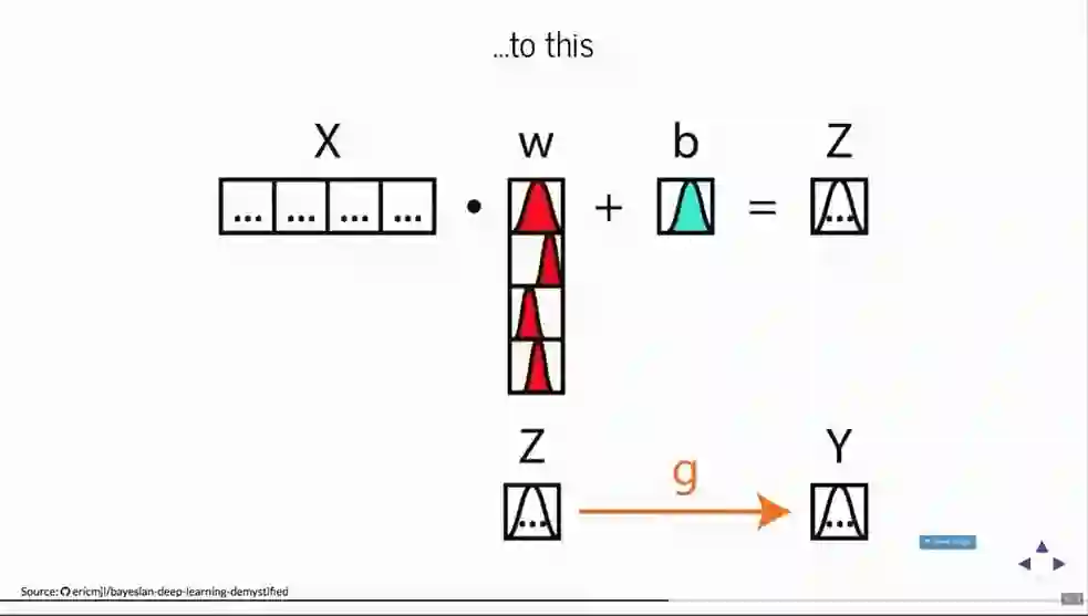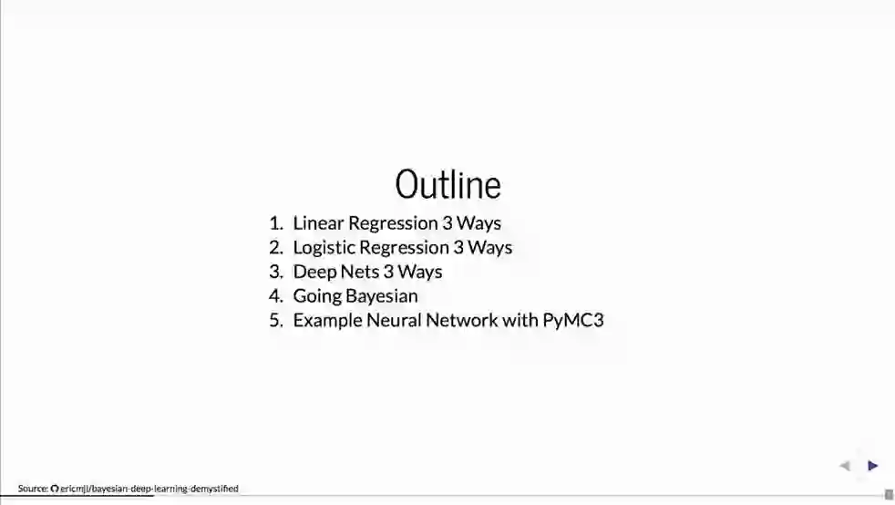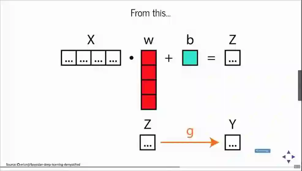 【导读】近日,Novartis的数据科学家 Eric J. Ma 进行了一次关于贝叶斯深度学习理论和实现的演讲,演讲题目是《An Attempt At Demystifying Bayesian Deep Learning》,在这次演讲中,目的是要做两件事情:揭秘深度学习的本质(实质上是用梯度下降进行带权值的矩阵乘法),并揭秘贝叶斯深度学习(将先验信息加在权值上)。 然后,作者通过PyMC3和Theano代码来说明如何构建贝叶斯深度网络,并将结果中的不确定性进行可视化,这个PPT和视频内容是学习贝叶斯深度学习非常好的资料,建议大家收藏。