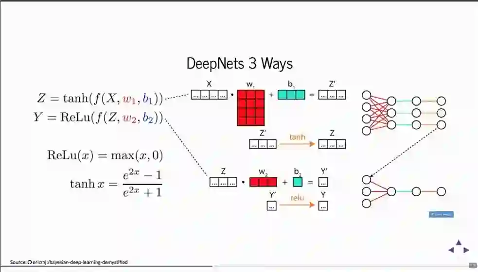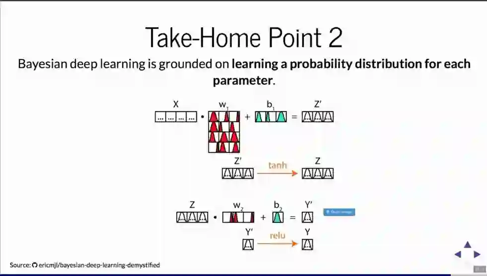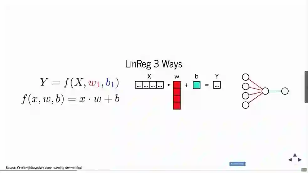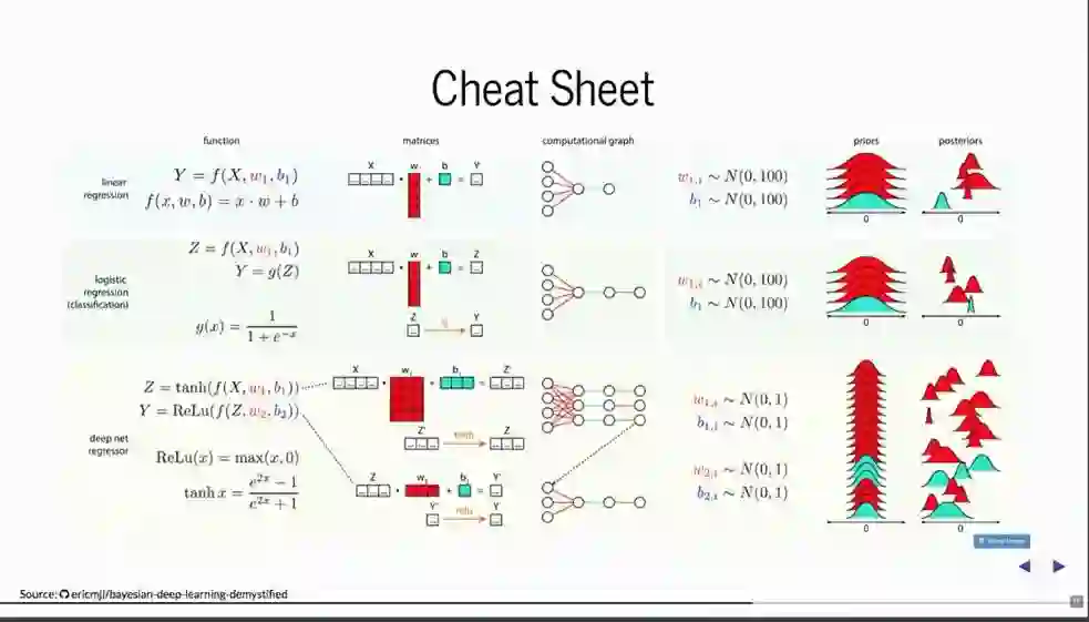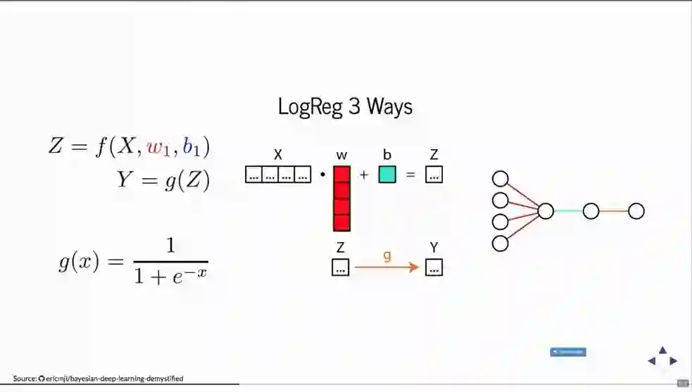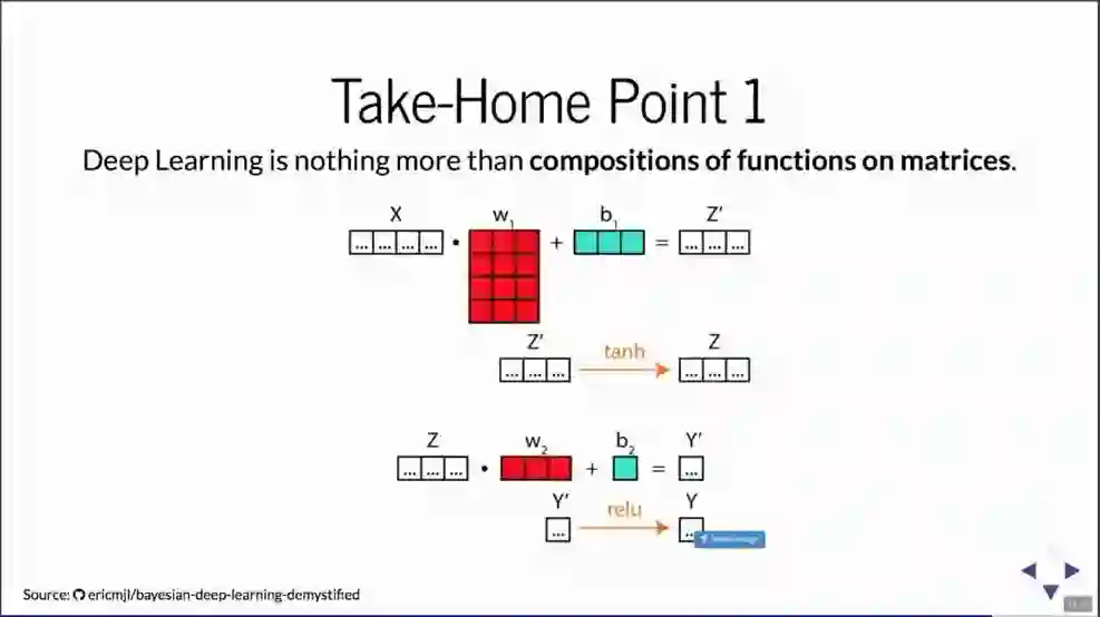 【导读】近日,Novartis的数据科学家 Eric J. Ma 进行了一次关于贝叶斯深度学习理论和实现的演讲,演讲题目是《An Attempt At Demystifying Bayesian Deep Learning》,在这次演讲中,目的是要做两件事情:揭秘深度学习的本质(实质上是用梯度下降进行带权值的矩阵乘法),并揭秘贝叶斯深度学习(将先验信息加在权值上)。 然后,作者通过PyMC3和Theano代码来说明如何构建贝叶斯深度网络,并将结果中的不确定性进行可视化,这个PPT和视频内容是学习贝叶斯深度学习非常好的资料,建议大家收藏。