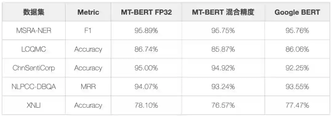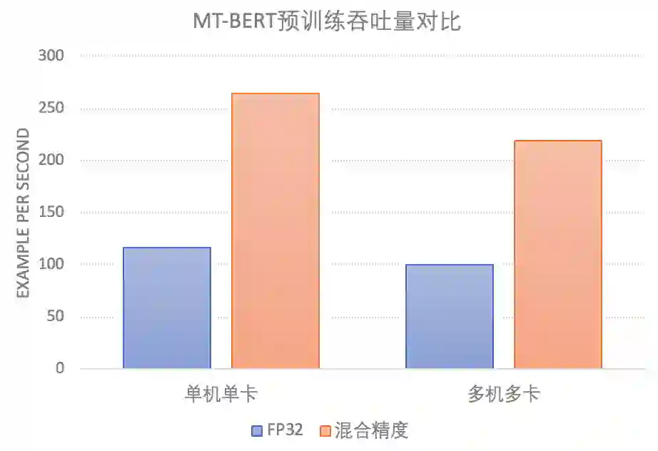 为了提高预训练效率,我们在MT-BERT预训练中采用了混合精度训练方式。