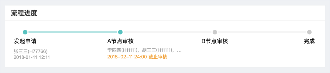 中后台系统会有非常多的流程协作功能,但是之前系统的做法仅仅是完成了流程的「功能」,却没有照顾到用户的「心理」,没有告知用户每个流程应有的节点、规范、当前进度。用户在等待流程推进的时候仿佛进入了一个黑箱,不知道现在的进度如何也不知道什么时候会完成,不仅是体验不好,而且会浪费大量的人力、资源在沟通流程进度上。