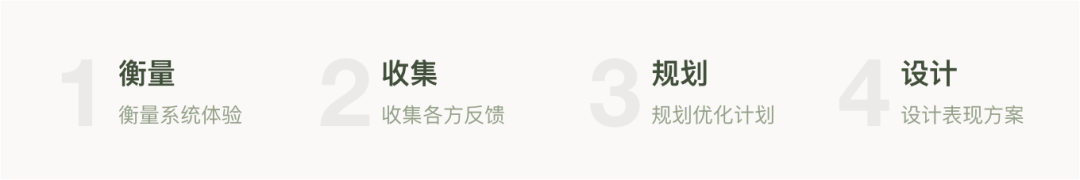 满意度问卷已经帮助我们客观地了解到用户对于系统的满意程度,也有了一定的优化重点,但对于落地方案来说,还是比较笼统而零散。作为一次完整的体验提升优化,还需要站在更全局的角度去仔细审视系统的每一个环节。