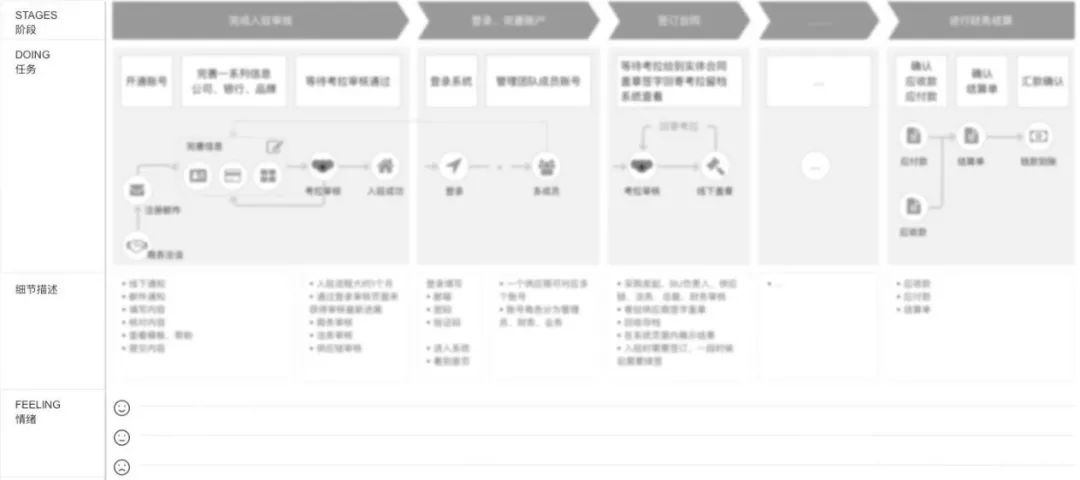 在此不再详述用户体验地图的定义和使用方法,具体可参考蚂蚁金服的实战案例:https://www.uisdc.com/user-maps-design-ali-case#