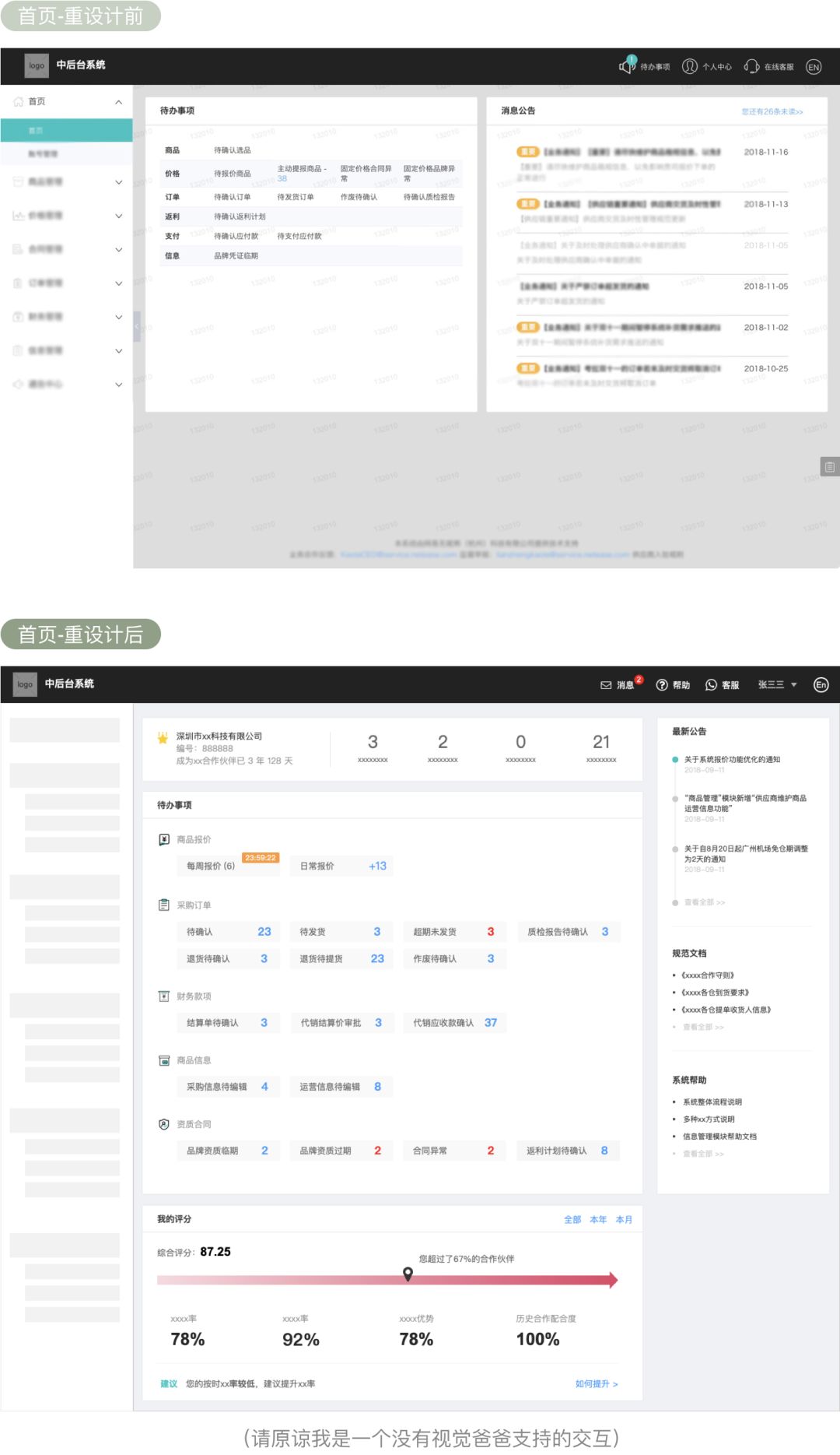自18年6月底介入电商中后台交互设计工作以来,笔者有幸做了很多和以往的交互设计不太一样的工作,除了日常需求的交互设计支持以外,更多的精力放在了系统整体体验提升和设计规范上。