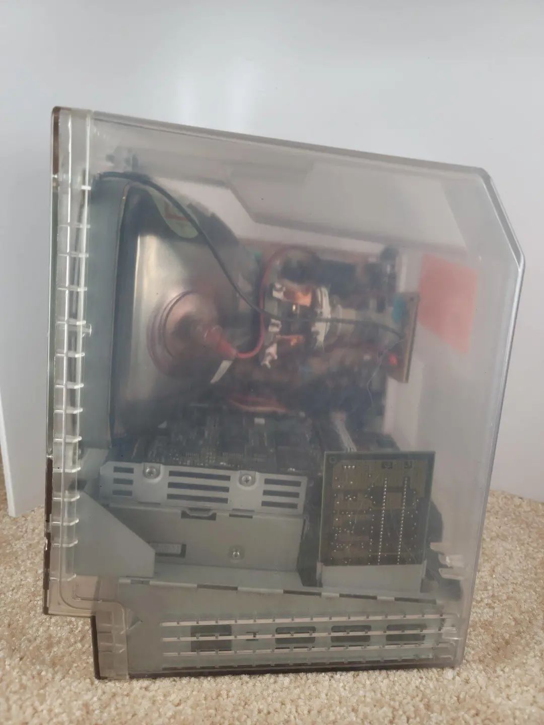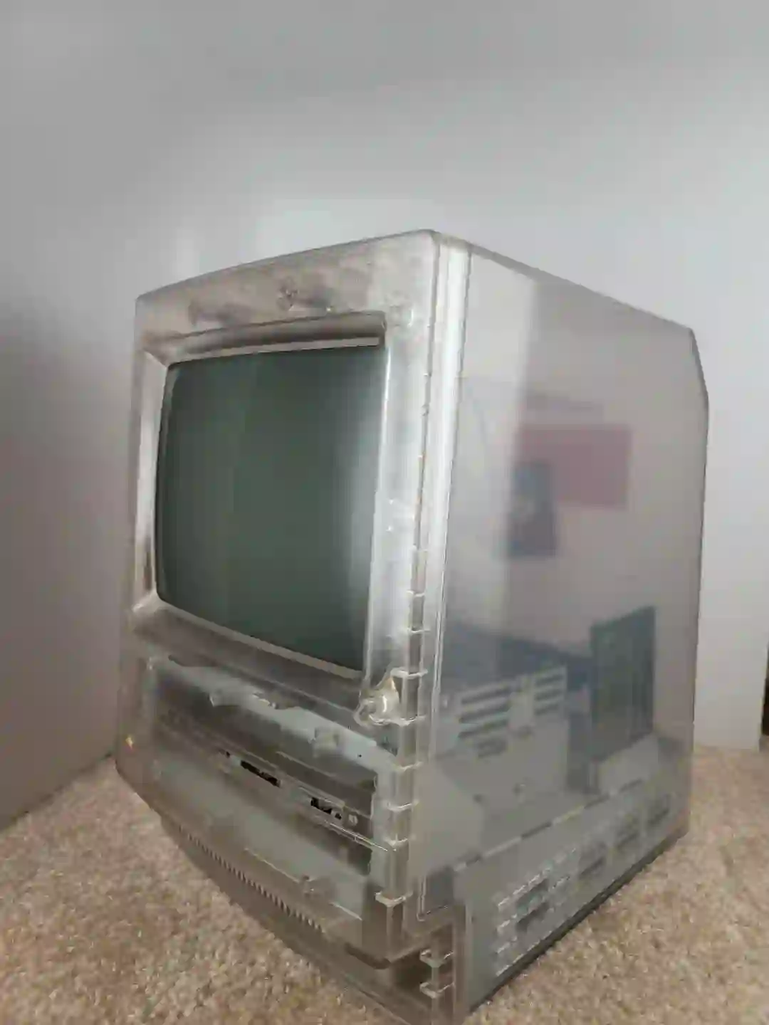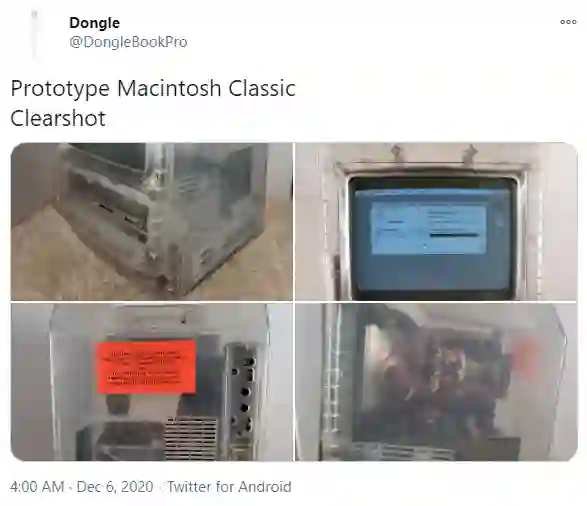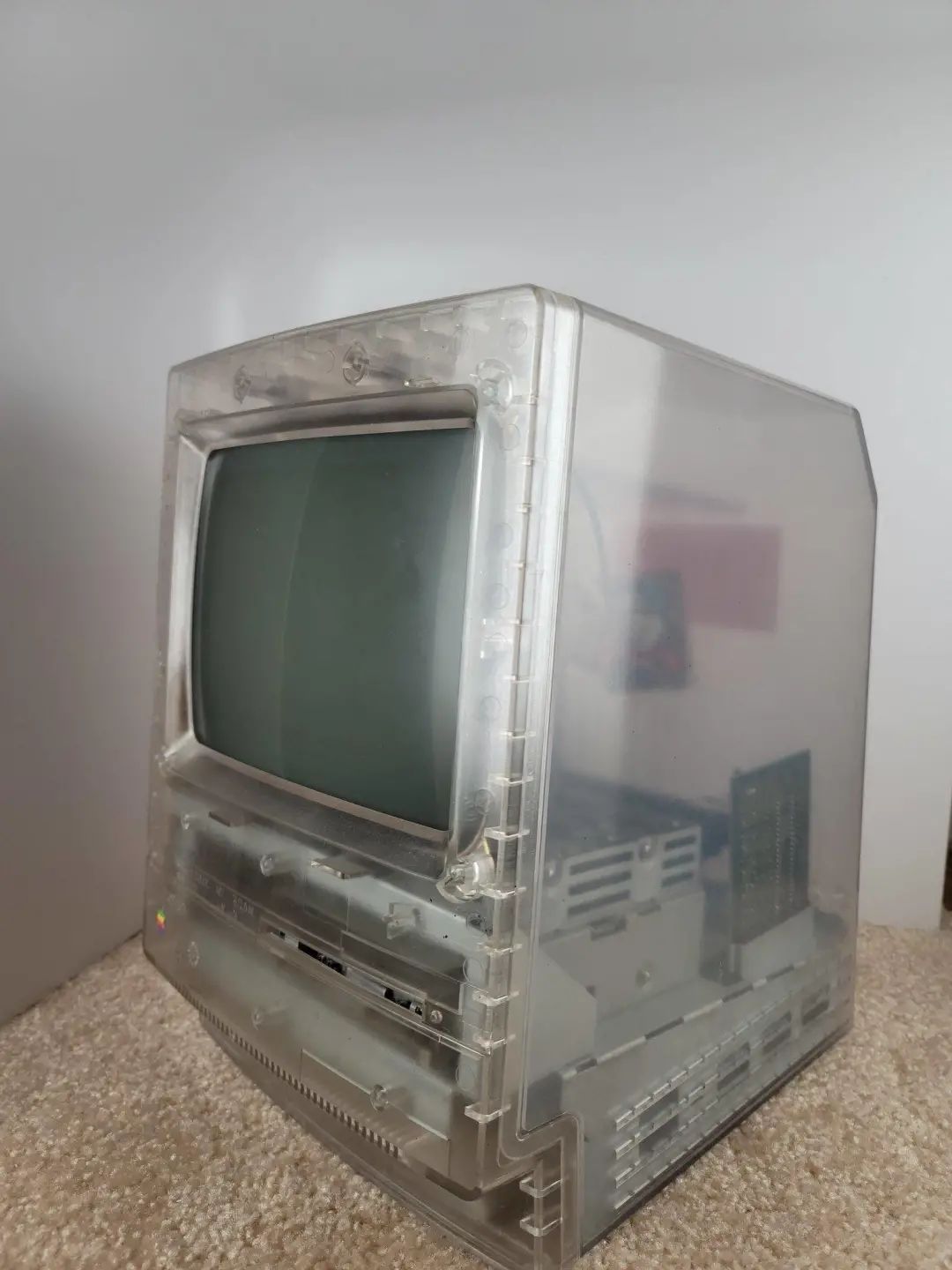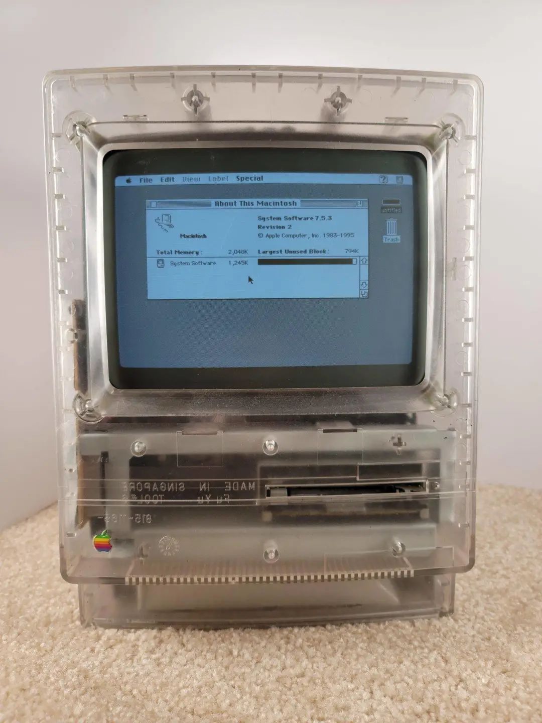 据 MacRumors,推特网友 DongleBookPro 最近分享了几张照片,展示了罕见的苹果电脑 Macintosh Classic “透明限定版”。