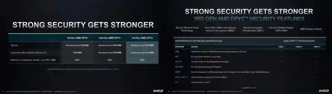 AMD Epyc 处理器在安全性方面的声誉要好于英特尔至强处理器。从 Epyc 罗马开始,Spectre 和 Spectre V4 攻击可以通过硬件和操作系统 / 虚拟机监视器(Hypervisor)得到缓解。而这次新发布的