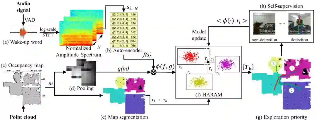 具体地说,我们使用从自动编码器获得的隐式声学特征以及地图上的几何特征进行训练。开发了一个自监督过程,该模型根据房间的优先级顺序来进行探索,对采集到的数据分配地面真值标签,实时更新学习模型。该框架不需要预先收集数据,可以直接应用于现实场景,而无需任何人工监督或干预。