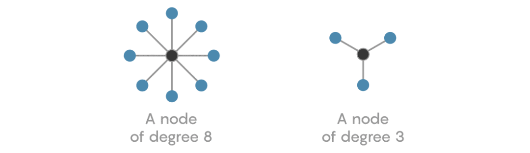 在网络中,一个节点的连接数被称为节点的“度”。一个度数高的节点会与更多的其他节点相连,度数低的节点会与更少的节点相连。