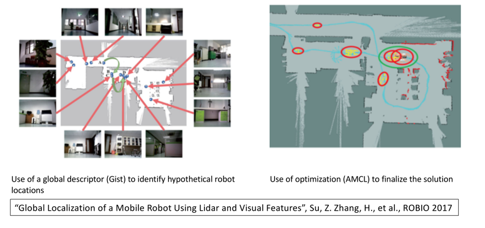 最后介绍两篇基于传感信息融合的全局定位方法。下图中的方法中,第一步通过视觉信息完成,第二步通过激光雷达完成。