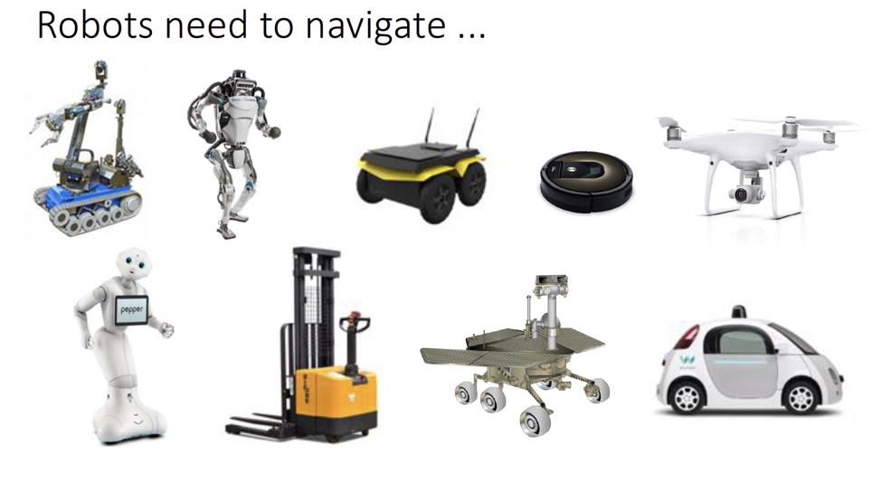 大家都知道,机器人分不同形式,有操作的机器臂,还有移动机器人,所有移动机器人都需要进行导航,包括防爆机器人、双足机器人、四足机器人、清洁机器人、UVA、自动驾驶机器人等等,所有的移动机器人都必须有一个自主导航的功能。