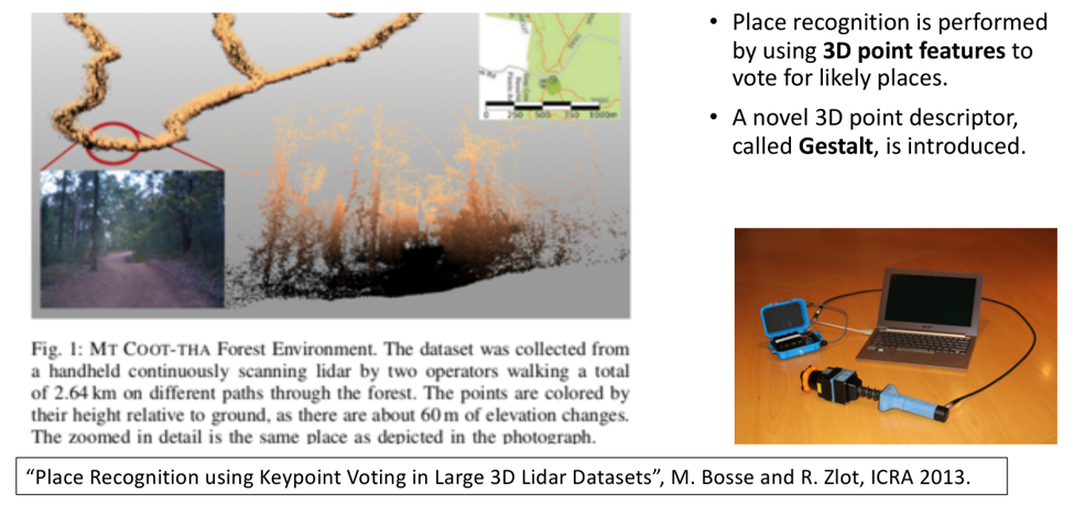 这篇文章解决了尺度问题:首先对三维多线激光雷达产生的点云进行特征(NARF)提取,把现在观察到的NARF特征跟地图中的NARF特征进行快速匹配,完成全局定位。