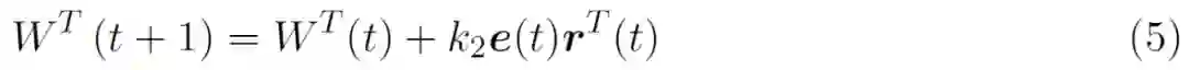 通过取 W^T 对 J 的导数,可得到如下所示的学习方程: