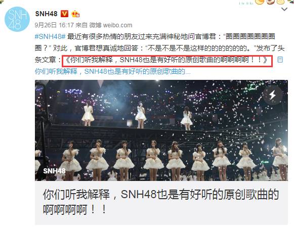 连SNH48也发文称“我们也是有好听的原创歌曲的啊啊啊啊!!”,并表示这歌不是团队原创。