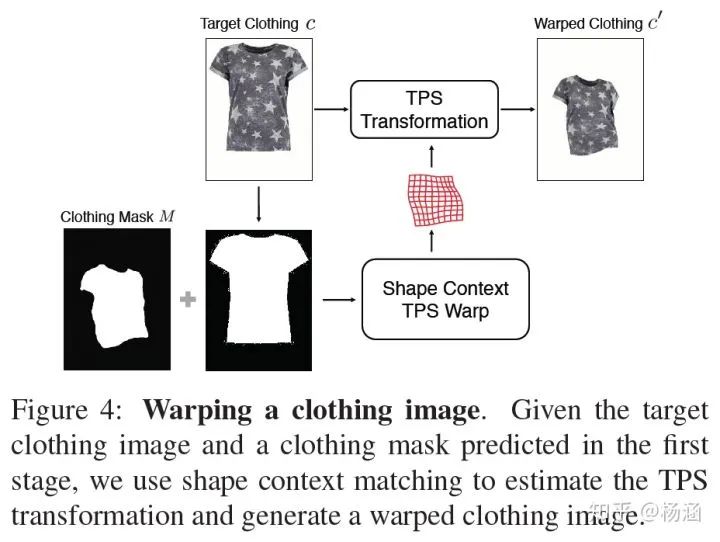 (2)在 Step II, Clothes Warping Module (CWM) 将目标衣服图片变形成