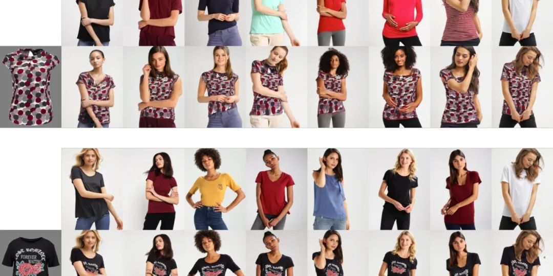 而基于图像的虚拟换装,可以直接生成换好装的人物图片。