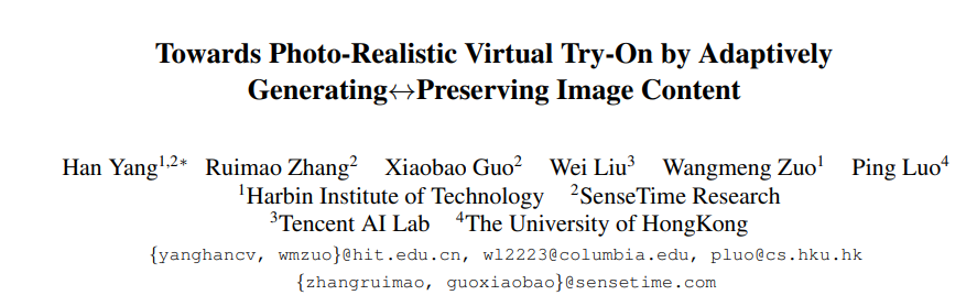 本文介绍的是CVPR2020入选论文《Towards Photo-Realistic Virtual Try-On by Adaptively Generating↔Preserving Image Content》。文章作者是来自哈工大的杨涵同学,本文首发于知乎。