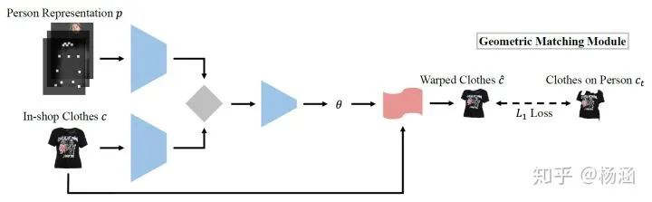 CP-VTON:CP-VTON基于VITON这个工作,增加了一个“GMM模块”,使用一个网络来回归TPS变换的参数,抛弃了之前利用shape context图像descriptor进行匹配的方法,变成learning-based,奠定了这一模块的一般设计方法。