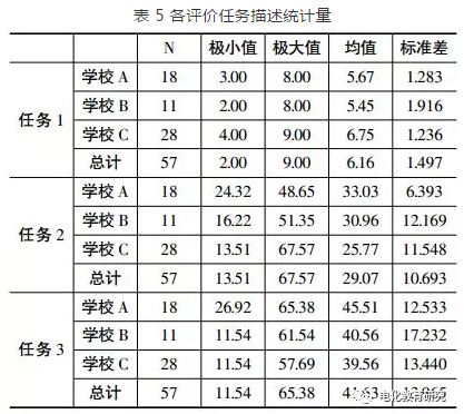 小学数学教师学科知识测评结果见表5。可以看出,教师对学科知识的把握情况远没有想象的那么乐观,他们在任务1(填充概念图)中的平均得分只有6.16分(满分10分),在任务2和任务3中的平均得分也只有29.06分和39.56分(满分100分)。