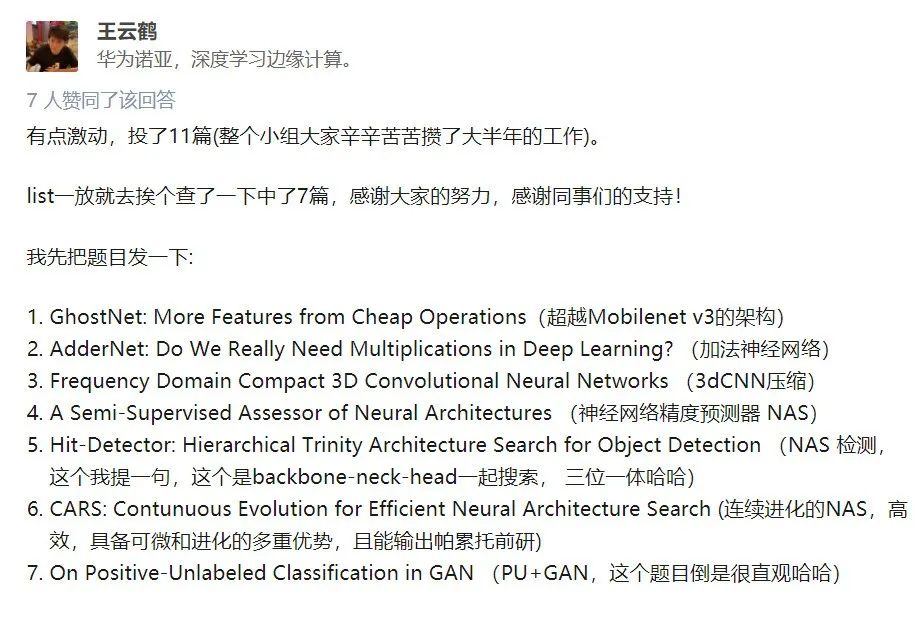 其中,华为诺亚方舟的同学们就一下中了 7 篇,好不快乐: