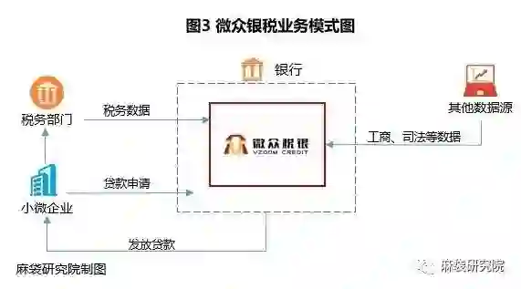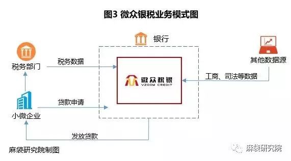 二是由第三方金融科技公司搭建平台,连接税务部门与银行。一方面平台为银行提供可作为风控输入的企业征信数据;另一方面,平台上推出可供小微企业申请的银行信贷产品。典型平台有微众税银、东方微银。