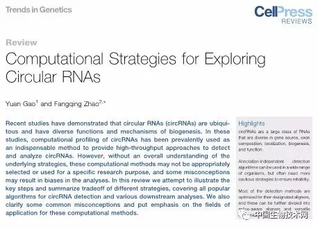近日,国际学术期刊Trends in Genetics在线发表了中国科学院北京生命科学研究院计算基因组学实验室赵方庆研究员的“Computationalstrategies for exploring circular RNAs”的综述文章。该论文全面阐述了环形RNA研究和数据挖掘中诸多方法,探讨了相关方法在非编码RNA数据挖掘中的适用条件与优劣评估,并指出未来环形RNA数据挖掘的发展趋势与挑战。