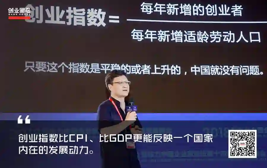 我自己发明了一个“创业指数”,把每年中国新增的劳动人口当作分母,把每年新创业的人当成分子,如果这个指数每年都在增长,中国经济就不会有问题。它比CPI、比GDP更能反映一个国家内在的发展动力。这是一个动力指数。如果没有人敢创业,如果创业的人没有机会成功,中国社会就会像40年前一样,不会有活力。