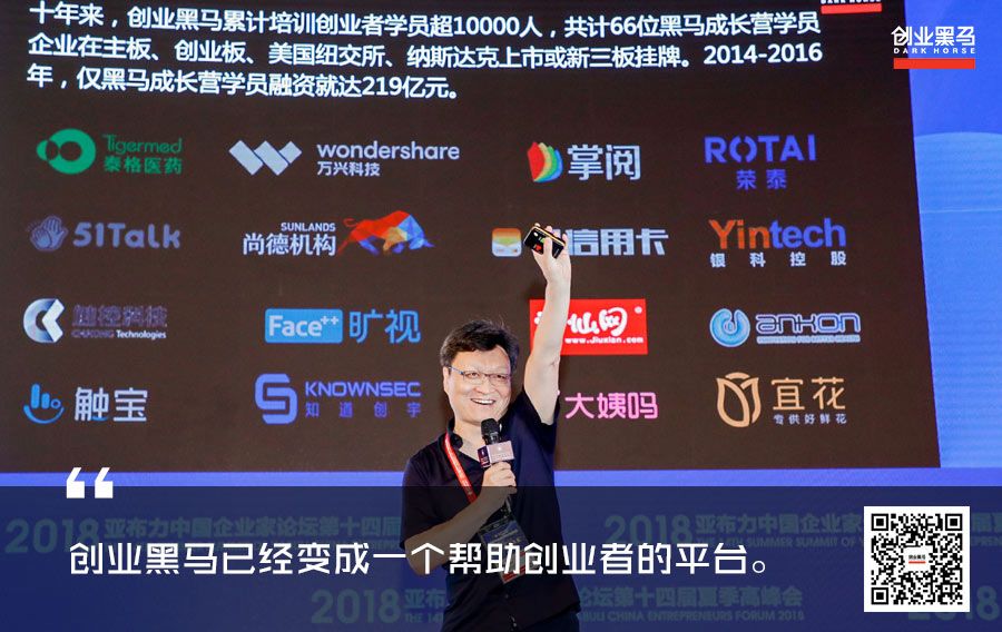 那么,现在的年轻人,现在的创业者,是否继承、发展了这种精神呢?创业黑马做了十年,总共培养了一万多位创业者,目前他们中有60多家上市了。去年一年上了5家。创业黑马已经变成一个帮助创业者的平台,每年在这个平台上有一百多亿人民币投下去。