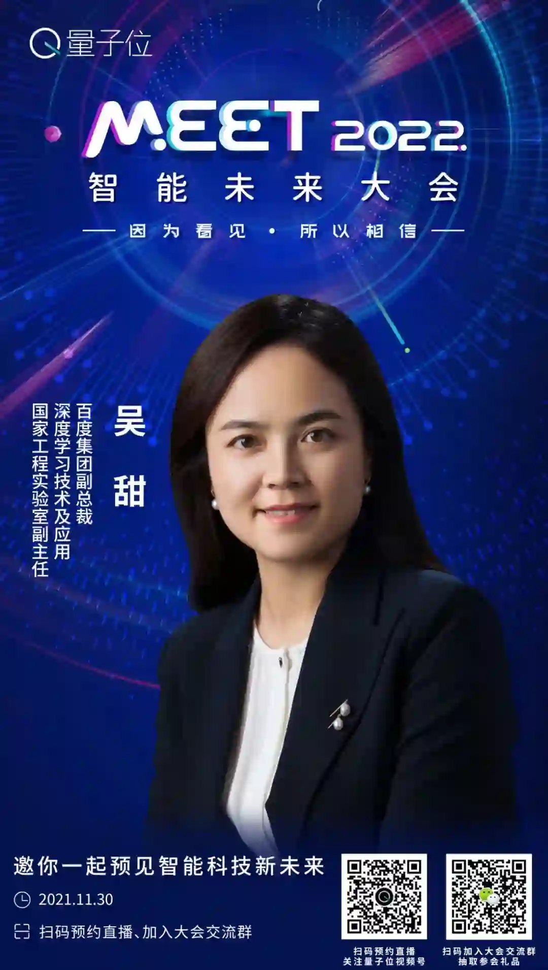 她负责的飞桨是中国首个功能丰富的产业级深度学习开源开放平台,百度大脑及开放平台是国内规模最大的综合AI开放平台。除百度集团副总裁身份外,她还是深度学习技术及应用国家工程实验室副主任。