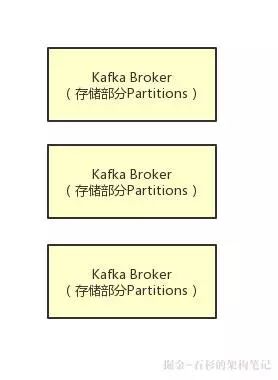 然后 Kafka 的 Broker 集群中,每台机器上都存储了一些 Partition,也就存放了 Topic 的一部分数据,这样就实现了 Topic 的数据分布式存储在一个 Broker 集群上。