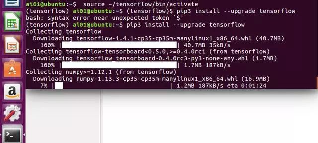 (tensorflow)$ pip install --upgrade tensorflow # 如果你用 Python 2.7(tensorflow)$ pip3 install --upgrade tensorflow # 如果你用Python3.n