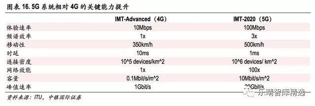 5G标准还将大幅提升网络性能,深入挖掘频谱效率或拓展可用频段。预计5G系统基带整体频谱效率将提升3倍。而5G系统带宽的定义也自LTE阶段的20M扩大到了500M,可以整合利用的系统带宽整整扩大了25倍。