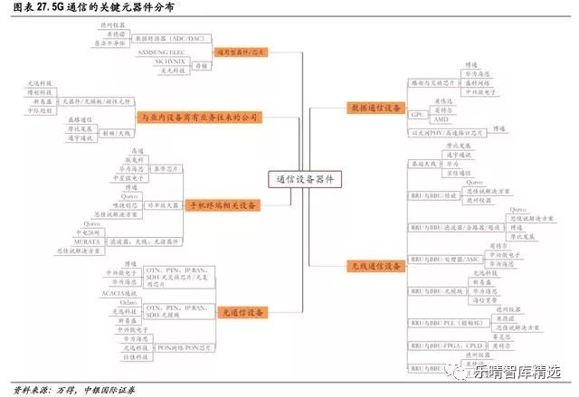因此我们判断,对于通信主设备与用户终端领域都非常关键的射频器件、AD/DA转换器件、基带芯片等电子元器件,将成为5G时代中国通信产业实现上游突破的关键定位。