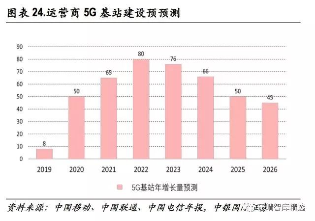 第一阶段从2019年起到2022年前完成全面覆盖,建成基于5G宏基站的全国性网络。完成量将对应2013到2016年4G宏站数的1.5到2倍。