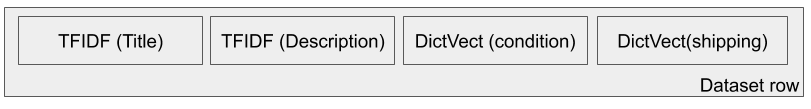 当准备下一版预测方法时,我们在回顾商品清单发布流程后,确定模型的关键特征至少需包含:产品名称、产品描述(自由文本)、类别和品牌。当然,这些数据需经清洗和整理才能用于我们的项目。项目 ETL (抽取转化加载。即 Extract, Transform and Load)部分的软件栈基于 scipy、pandas、numpy 和 scikit-learn。在确定特征后,下面我们对数据进行矢量化。