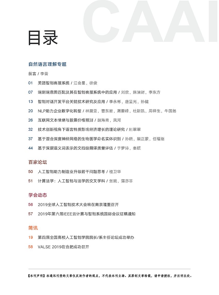 学会期刊丨《中国人工智能学会通讯》2019年 第9卷 第02期