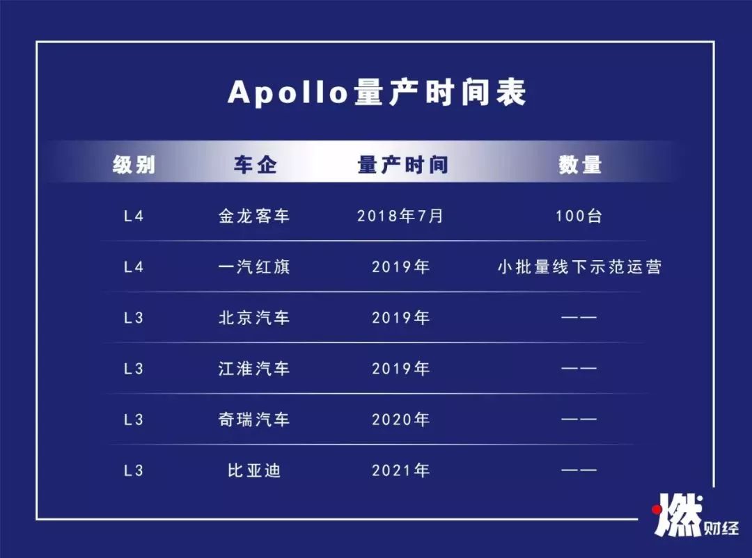 百度Apollo量产时间表