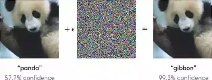 很多学者都对对抗性攻击这个主题展开了积极探索。什么是对抗性攻击?举个例子,在ImageNet上训练得到的标准网络在受到特殊噪声影响的图片上进行分类会变得十分不稳定。在下面的例子中可以看到,人眼观察到经过噪声影响的图像与原始图像相比基本没有变化,但是模型却出现预测错误的问题。