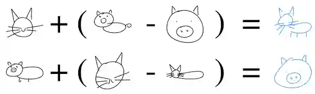 甚至可以通过向量运算创造出“catpig”(猫猪)的形象。